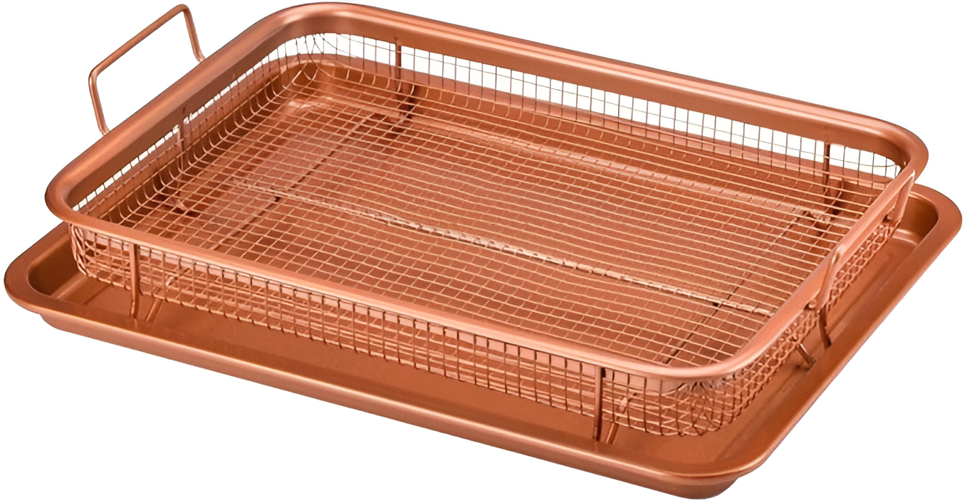 ‘- عايز تحضر أكل مقلي صحي وبنفس الطعم؟ صينية التحمير بديلة الاير فراير دي هتخليك تستمتع بأكل مقرمش وخالي من الزيت الزائد، وكأنك بتستخدم إير فراير بس بدون تكلفة!”