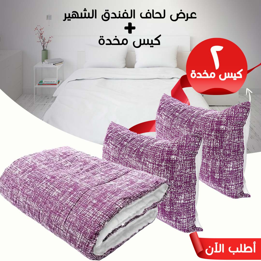 عشان كلنا بنحب ان شكل اوضتنا يكون مودرن وشكلها يكون شبه اوضة الفندق وفرنالك لحاف الفندق الفايبر و2 كيس مخده بسعر ميتفوتش, الحقي اطلبي العرض قبل نفاذ الكمية.