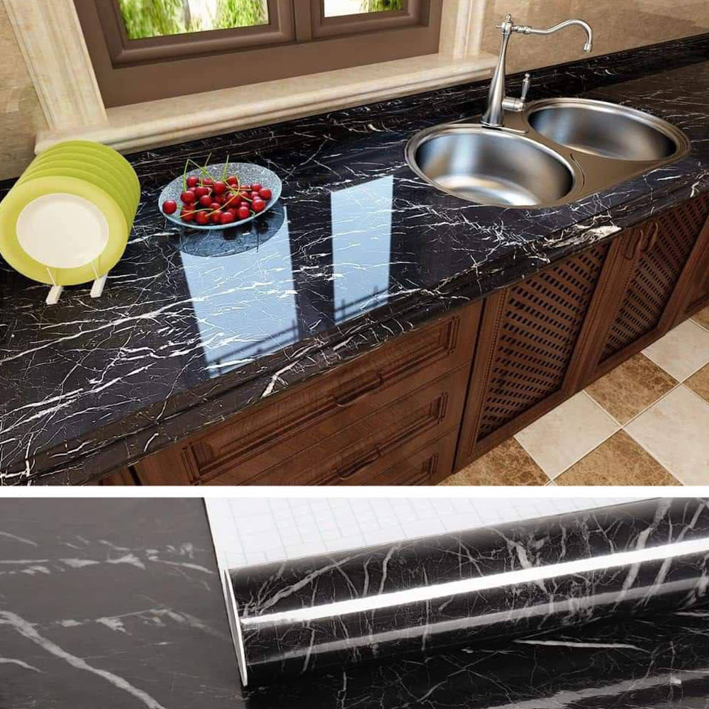 – رول استيكر ماربيلا أسود ماربيلا رخامي عالى الجودة، عملي وبيضيف لمسة من الأناقة بلونه الأسود الفخم. مضاد للمياه والحرارة سهل الاستخدام وبيتميز بلاصق قوي بيدوم لفترة طويلة. ه