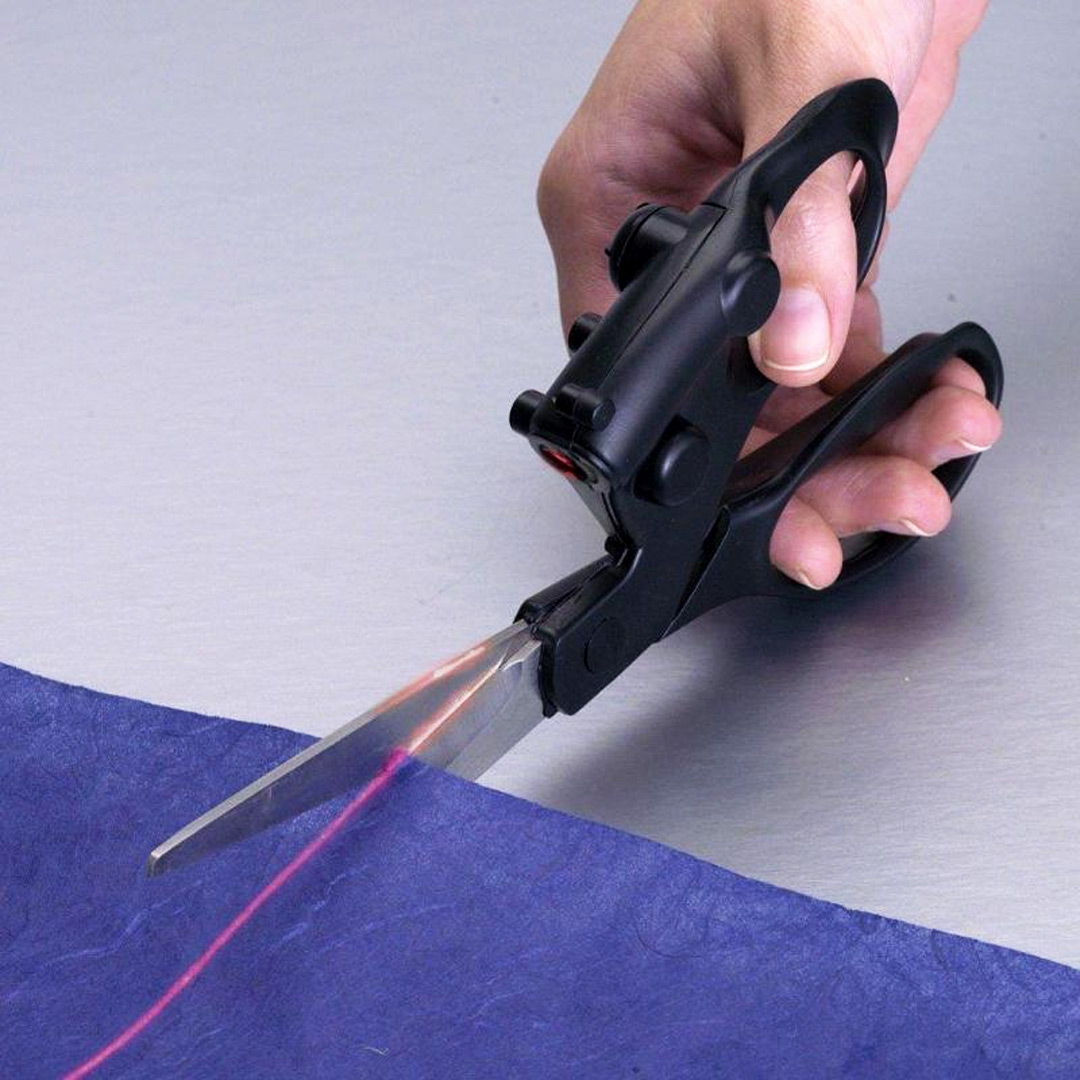 هتقصي و تطلعي نتايج مقاساتك مظبوطة، مقص ليزر عملي من الاستانليس هتستخدميه في كل حاجة، استخدمي المقص الليزر و اضمني مقاساتك.
